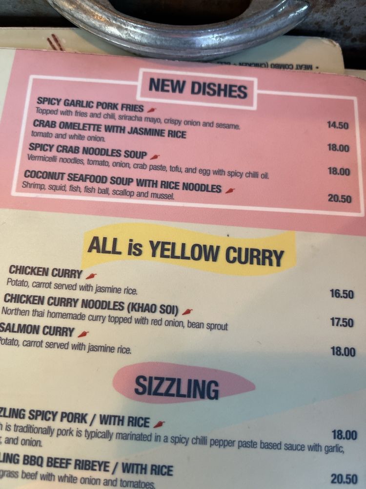 Yellow curry paste cooked with potato, carrot, onion, and coconut milk.